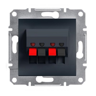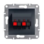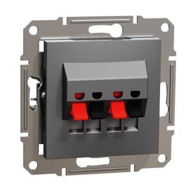 The Asfora loudspeaker socket in anthracite provides a reliable and stylish connection for your audio systems. Made of durable ABS+PC material, it ensures long-lasting performance. Compatible with all Asfora products, it complements the range’s elegant design while being built to withstand everyday use. Installation is simple and quick with screwless terminals.